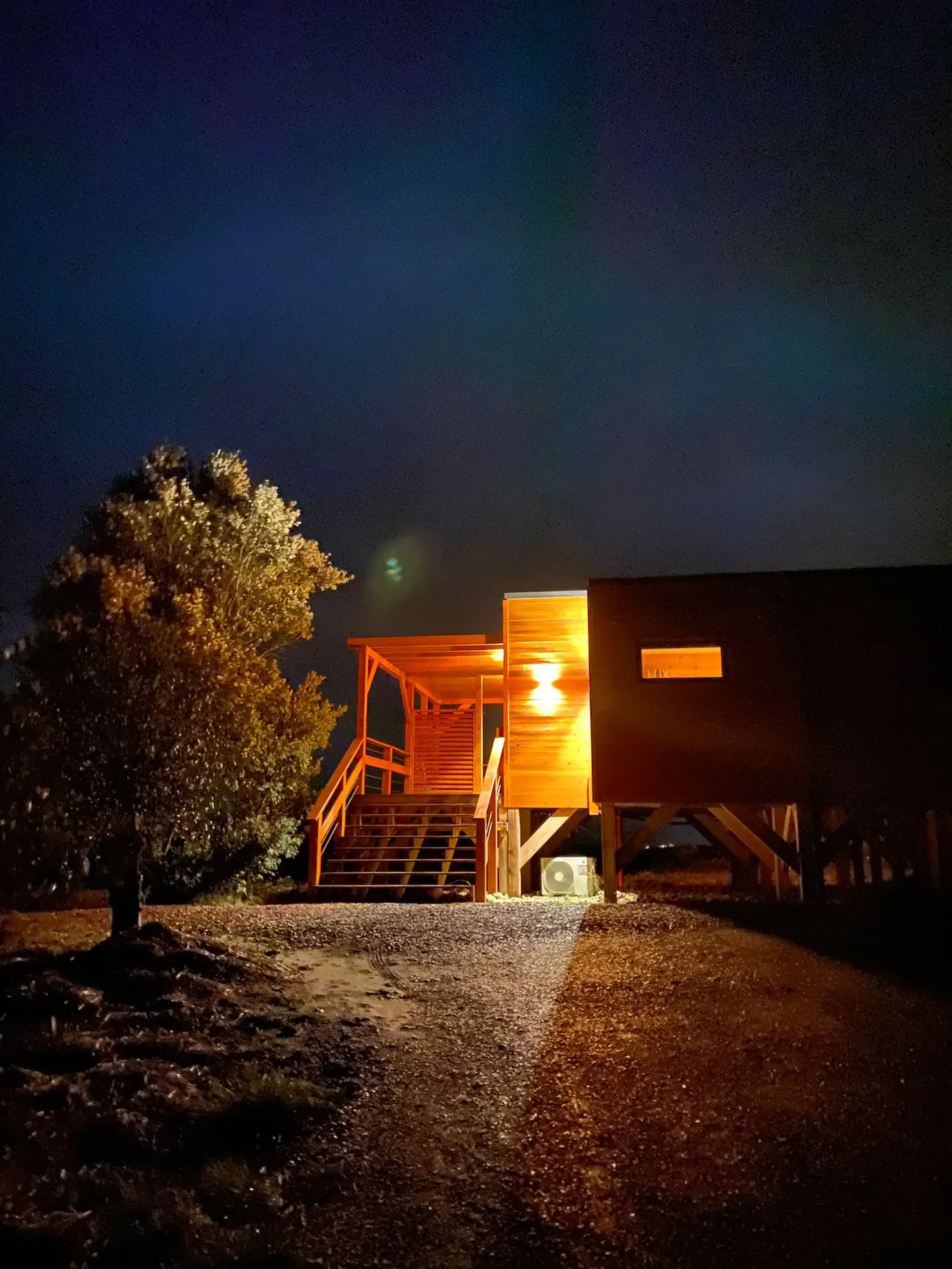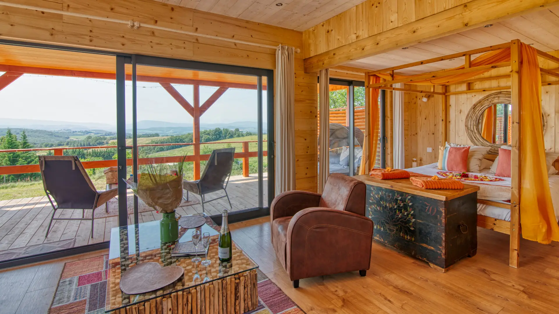 Aux portes des Pyrénées dans l’Aude, tel un nid d’aigle sur son promontoire, Cabanes Trésors de Campagne vous présente la Cabane de prestige « A perte de vue » perchée sur pilotis avec jacuzzi privatif et piscine extérieure.