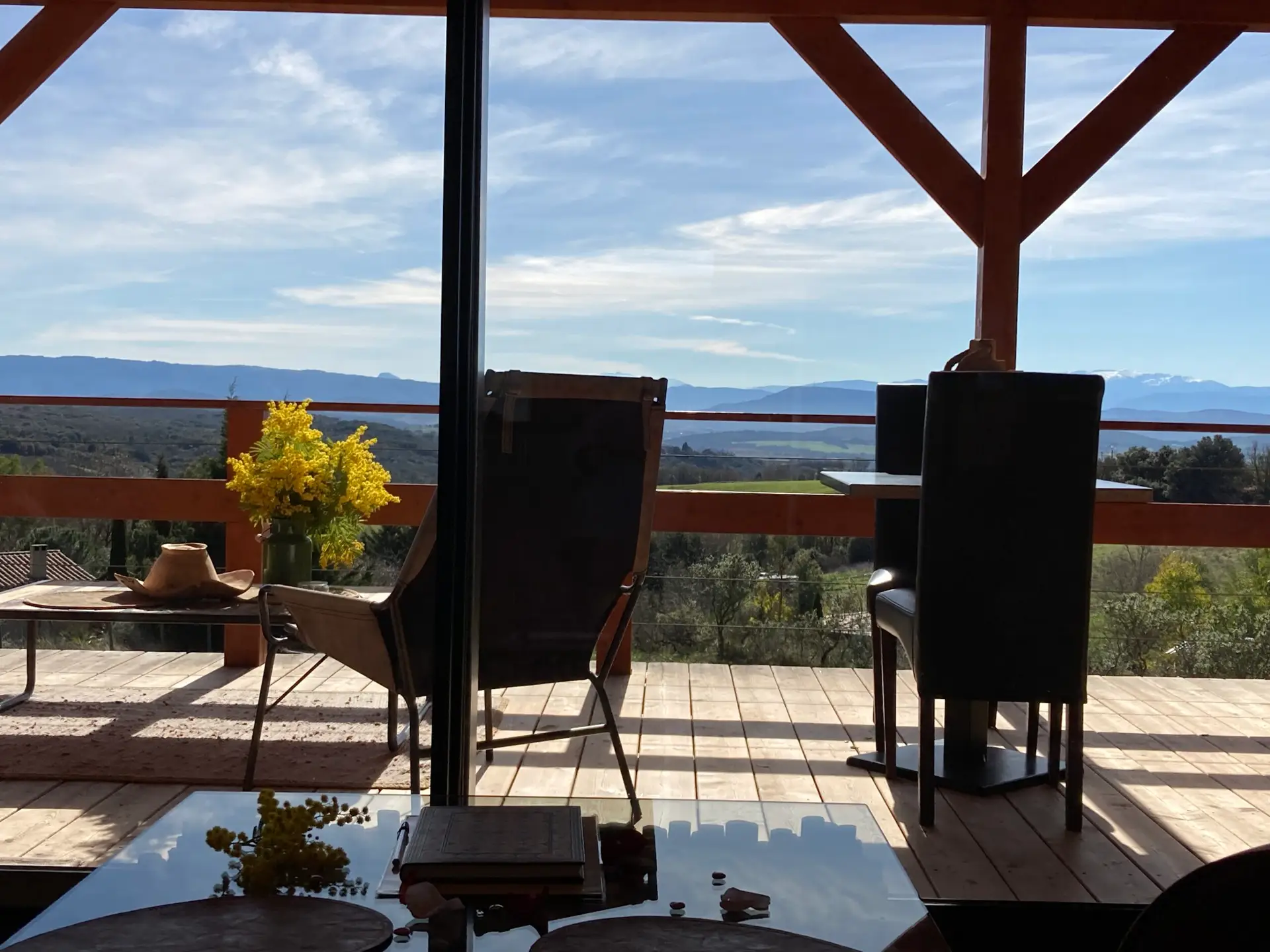 Juchée sur des pilotis à hauteur de 1.80 mètres, cette cabane d’exception vous offre une vue panoramique à vous couper le souffle. A 360°, le regard porte au loin sur toute la chaîne des montagnes des Pyrénées et sur une mosaïque de paysages aux couleurs chatoyantes du soleil.
