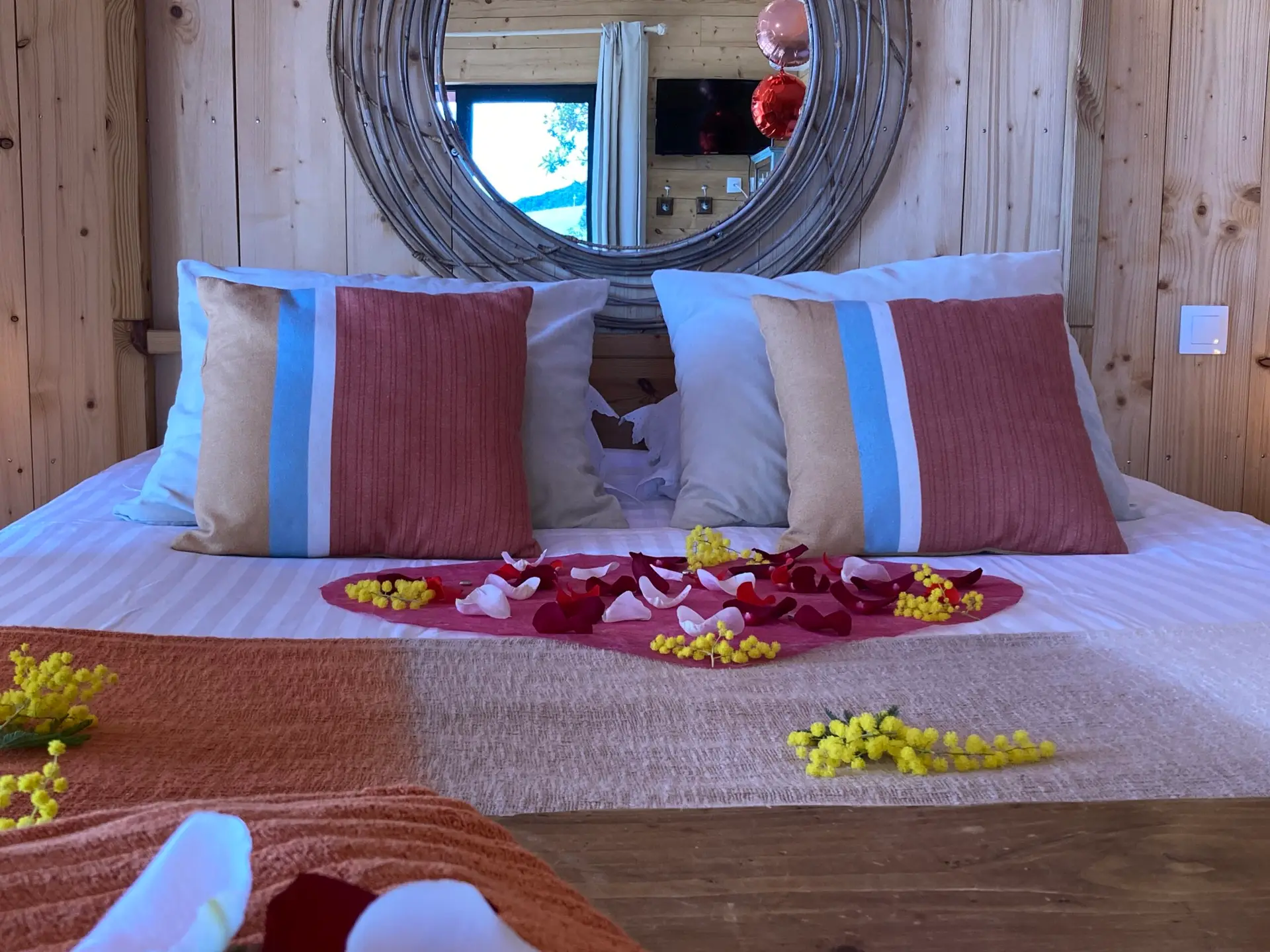 Avec un intérieur cosy et lumineux, ambiance sobre et chic, une terrasse spacieuse dotée de son spa privatif vous plongerez doucement dans cet univers de poésie avec le sentiment d’être « seul au monde » !
